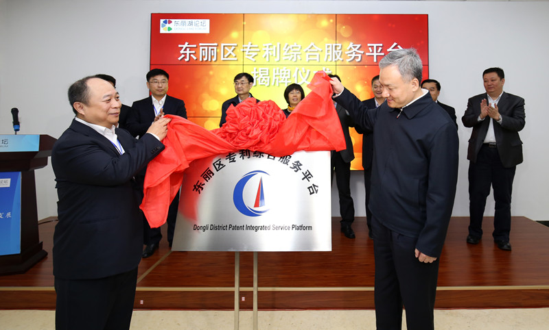 论坛正式开始前,天津市东丽区区委书记尚斌义与中心主任魏保志共同为“东丽区专利综合服务平台”揭牌。天津市知识产权局党组成员、副局长王成、东丽区区委常委、副区长白凤祥致辞。
